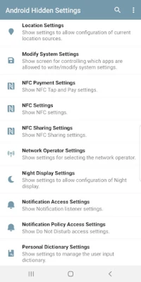 لا مزيد من الإحباط أو البحث الطويل. تُمكّنك هذه الأداة من التحكم الكامل بجهازك بلمسة زر. استمتع بتجربة مستخدم سلسة وفعالة، حيث تصبح إدارة إعدادات جهازك، سواء كانت عامة أو تفصيلية، أمراً بديهياً وسريعاً. اكتشف مدى سهولة الوصول إلى إعدادات اللغات، إعدادات الطباعة، أو إعدادات NFC بضغطة واحدة. إنه رفيقك الأمثل لتوفير الوقت وزيادة الإنتاجية، محولاً جهازك إلى آلة أكثر ذكاءً وكفاءة في يديك.