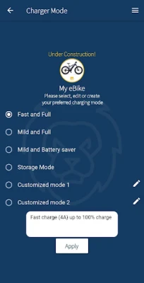 أطلق العنان للإمكانات الكاملة لبطارية دراجتك الكهربائية أو سكوترك الإلكتروني مع تطبيق LiON Charger. إنه ليس مجرد شاحن؛ بل هو حارس شخصي لبطاريتك الثمينة، مصمم لضمان أقصى عمر افتراضي لها وأداء لا مثيل له. ودّع القلق بشأن تدهور البطارية واستمتع براحة البال التي يوفرها الشحن الذكي والمتحكم به بالكامل، مما يحوّل شاحن LiON الخاص بك إلى نظام إدارة طاقة فائق الذكاء.