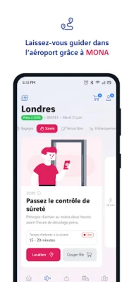 بمجرد وصولك إلى المطار، يظل **MONA** دليلك الذي لا غنى عنه. احصل على رؤى قيمة حول وسائط النقل المختلفة لضمان وصولك في الوقت المحدد إلى صالة المغادرة. تنقل بسهولة عبر صالات المطار الصاخبة، واكتشف مجموعة شاملة من المتاجر والمطاعم والخدمات الأساسية المصممة لراحتك. ابقَ على اطلاع دائم بالتنبيهات الفورية والإشعارات اللحظية حول حالة رحلتك، مما يضمن راحة البال ويتيح لك الاستمتاع الكامل بلحظات ما قبل الرحلة دون أي مفاجآت غير متوقعة.