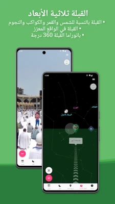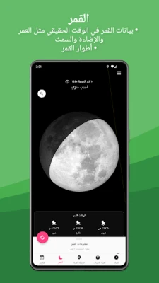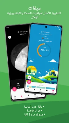 تجربة القبلة مع ميقات تتخطى حدود المعتاد، حيث يمكنك استخدام الواقع المعزز لمعاينة اتجاه القبلة في محيطك الفعلي، أو الانغماس في جولة بانورامية 360 درجة داخل المسجد الحرام. ولإضافة طبقة أخرى من الدقة، يتيح لك التطبيق تحديد القبلة بالاستعانة بمواقع الشمس والقمر والنجوم والكواكب. ولمزيد من الأمان والاطمئنان، يقوم ميقات بتنبيهك فورًا عند اكتشاف أي تداخل مغناطيسي قد يؤثر على دقة بوصلة هاتفك. أما فيما يخص القمر، فيوفر ميقات إمكانية فريدة لمحاكاة رؤية الهلال من موقعك، مما يسهل تحديد بدايات ونهايات الشهور الهجرية والمناسبات الإسلامية الهامة كالأعياد ورمضان بدقة بالغة، مع عرض تفصيلي لأطوار القمر وعمره وإضاءته في الوقت الفعلي. كما يتضمن ميقات تقويمًا هجريًا شاملاً يبرز التواريخ الإسلامية الرئيسية ويوفر ميزة التحويل السلس بين التقاويم.